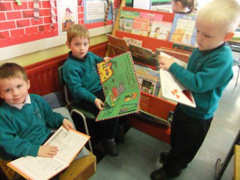 Pupils are immersed in a stimulating environment of print, surrounded by books and other reading materials presented in an inviting and attractive way.