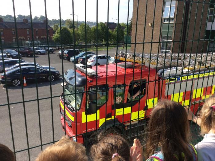 The P1’s we’re happy to get up close and photographed with the firefighters and their fire engine when it came to school for ‘Walk to School’ week. We have been painting fire fighters, making 3D models of fire engines and drawing maps during our ‘People Who Help Us’ topic.